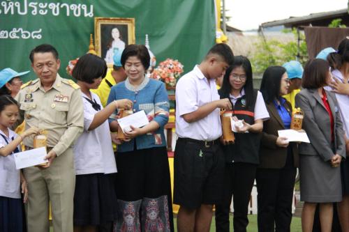 โดยสำนักงานพัฒนาชุมชนจังหวัดเลย มอบทุนอุปการะเด็กชนบท กองทุนพัฒนาเด็กชนบทในพระราชูปถัมภ์ฯ จำนวน 10 ทุน ๆ ละ 1,000 บาท รวม 10,000 บาท อำเภอเมืองเลยและสำนักงานพัฒนาชุมชนอำเภอเมืองเลยสนับสนุนทุนเพิ่มเติม 4 ทุน คือ ทุนจากคณะกรรมการพัฒนาสตรีอำเภอ (กพสอ.) เมืองเลย จำนวน 2 ทุน ๆ ละ 1,000 บาท รวม 2,000 บาท ทุนจากเครือข่ายกองทุนหมู่บ้านและชุมชนเมือง (กทบ.) ตำบลนาดินดำ จำนวน 2 ทุน ๆ ละ 1,000 บาท รวม 2,000 บาท รวมทั้งสิ้นจำนวน 14 ทุน รวมเป็นเงิน 14,000 บาท
